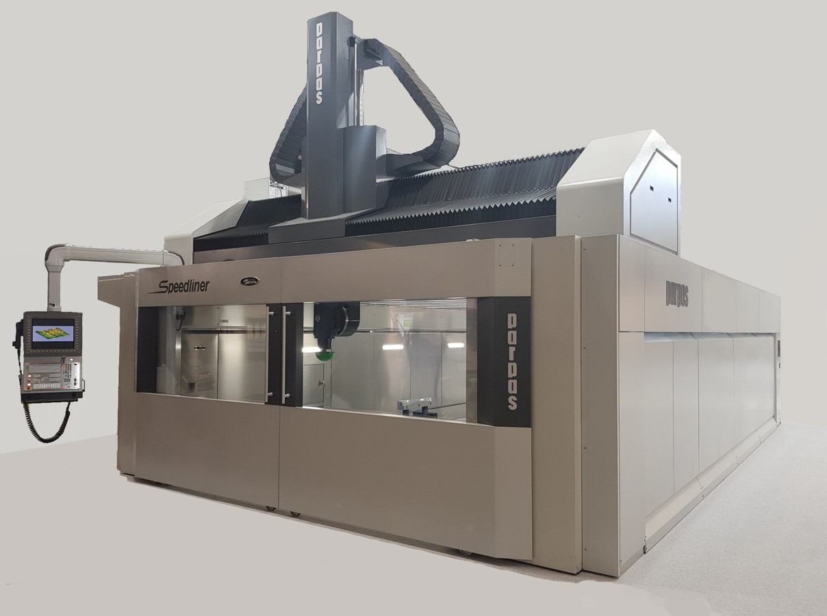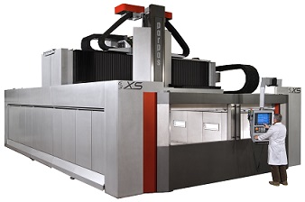 Gruppo Parpas bietet verschiedene Maschinen in der Fahrständerbauweise. Hierbei wird das Werkstück auf einem feststehenden Tisch positioniert und die Achsbewegungen über den Fahrständer durchgeführt.